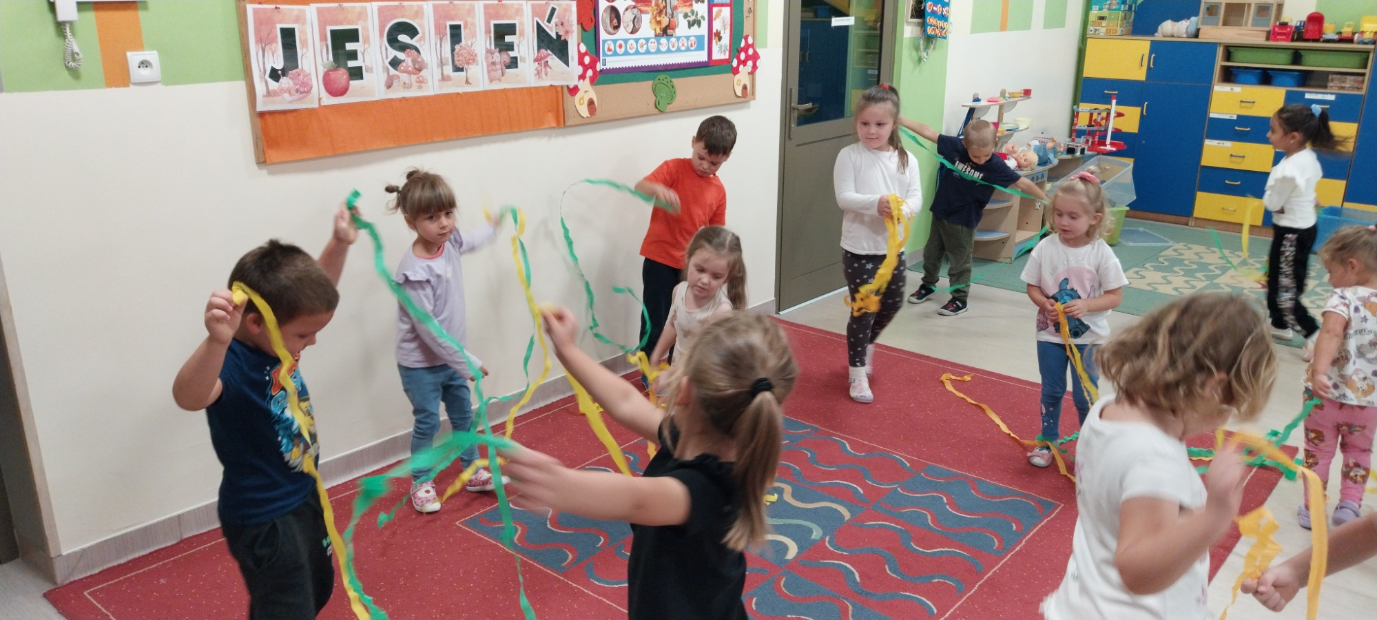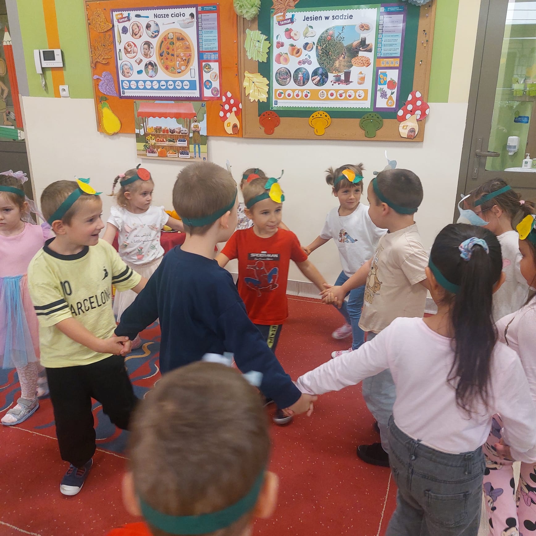 Dzisiaj zgodnie z tradycją w naszym przedszkolu powitaliśmy Panią Jesień, gdyż tego dnia kończy się astronomiczne lato, a zaczyna się kolejna pora roku - jesień.