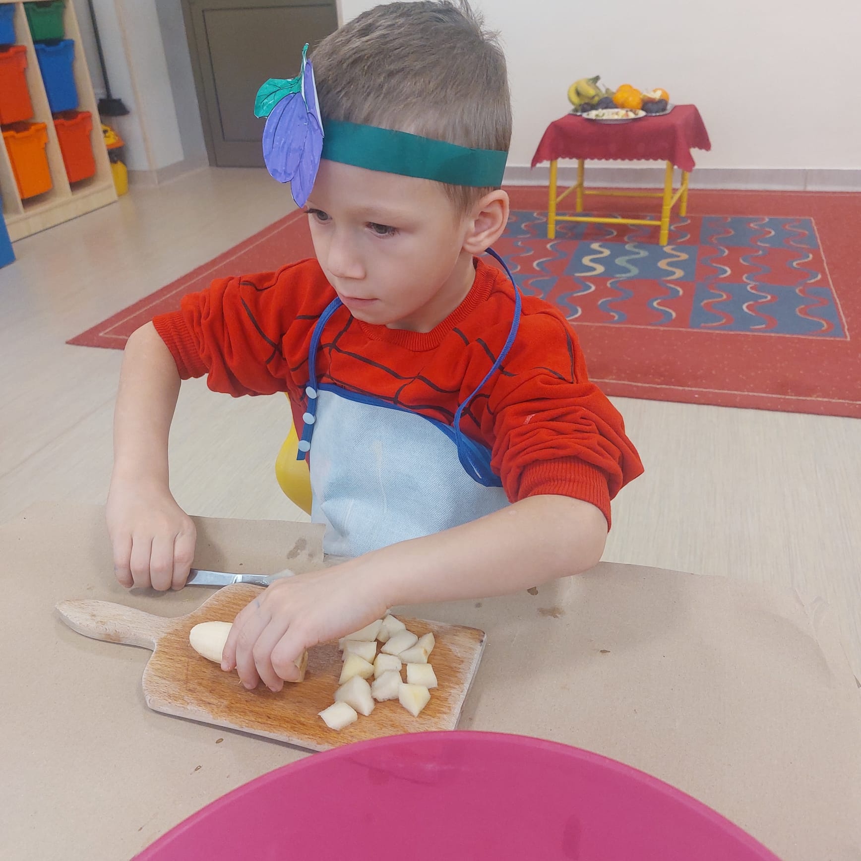 17 października obchodziliśmy Światowy Dzień Owoców i Warzyw. W tym dniu Plastusie rozwiązywały zagadki o owocach, dzieci rozpoznawały owoce wykorzystując różne zmysły, uczestniczyły w zabawie ruchowej "Owoce", dowiedziały się o walorach zdrowotnych płynących ze spożywania owoców i warzyw. Przestrzegając zasad higieny pracy i bezpieczeństwa Plastusie przygotowały pyszną sałatkę owocową, którą wspólnie dzieci spożyły ze smakiem. Zajęcia dostarczyły dzieciom radości i satysfakcji z przygotowanego wspólnie posiłku.
