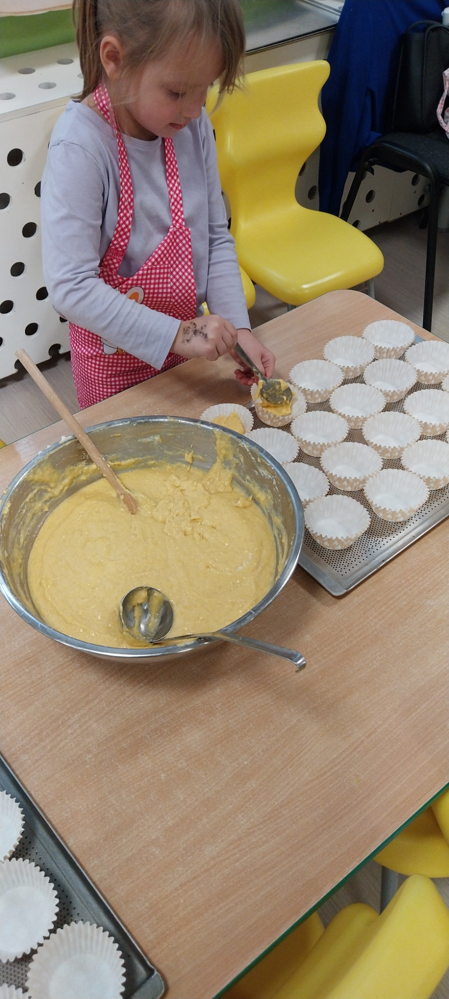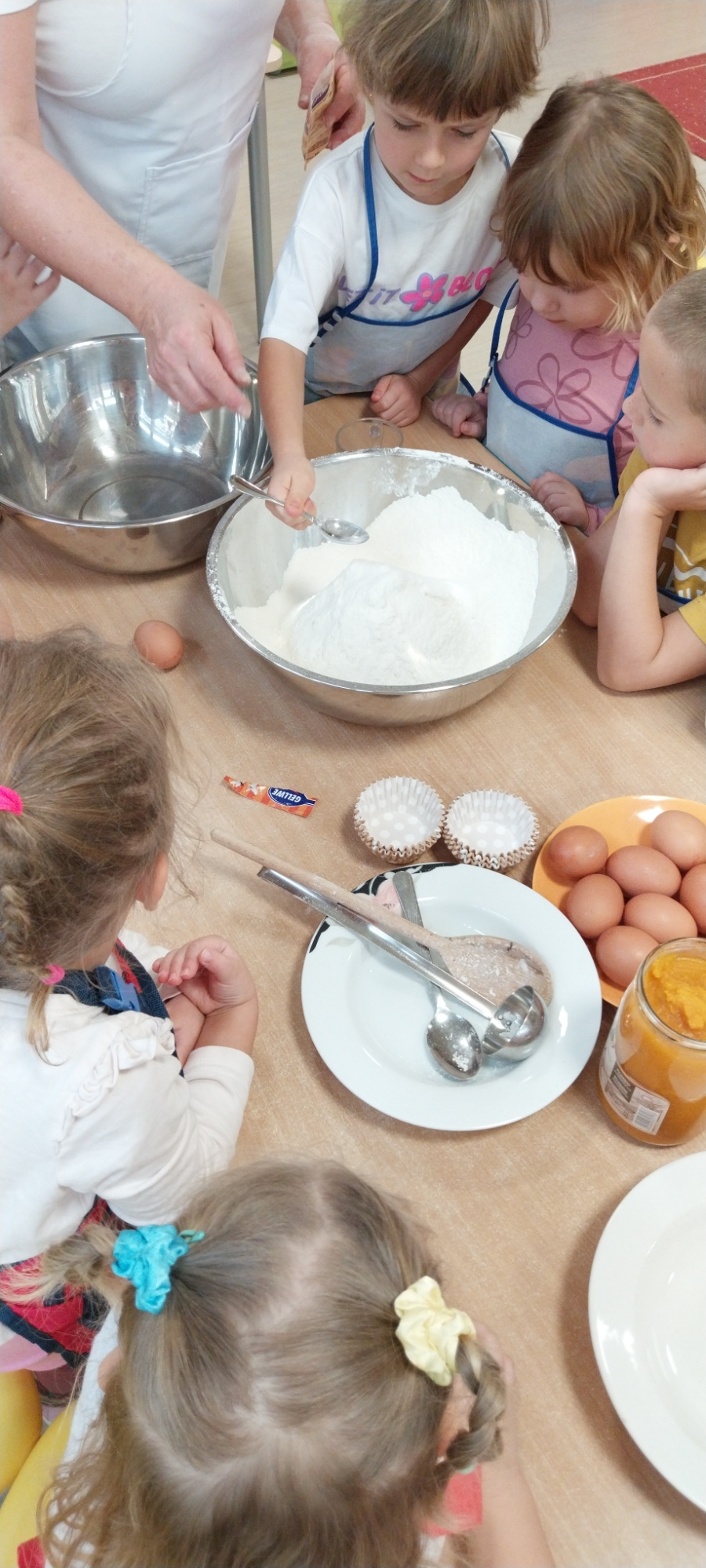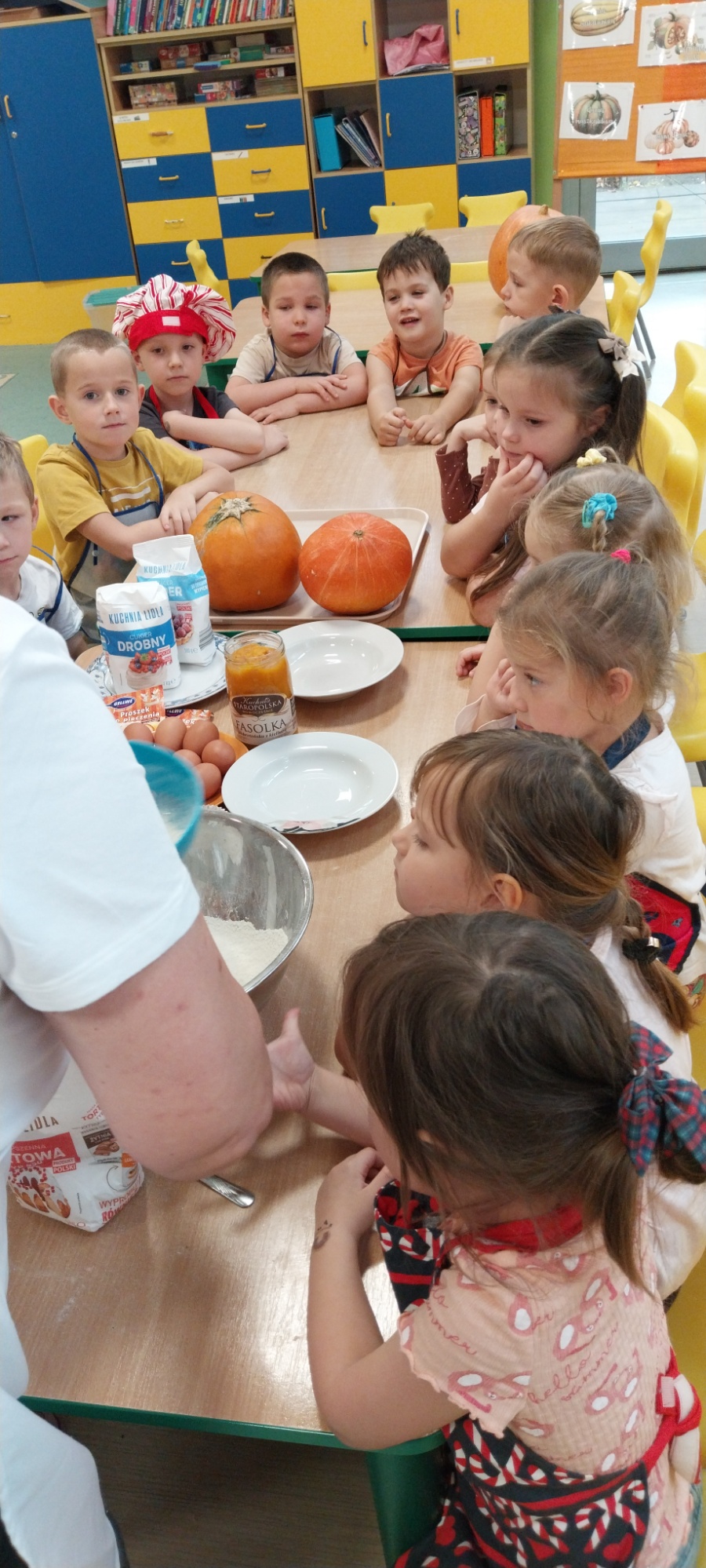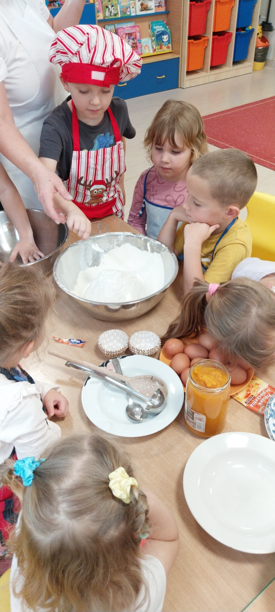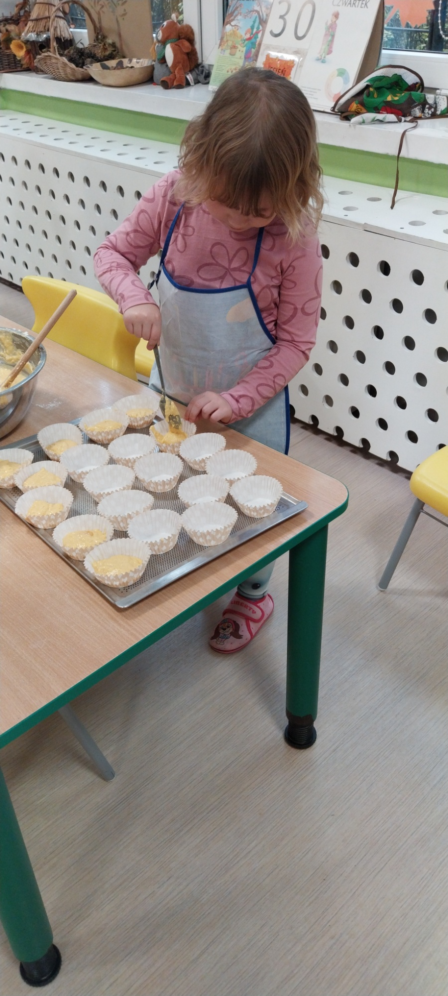Zamieniamy się w małych kucharzy:) Pieczemy babeczki dyniowe, oczywiście według przepisu.