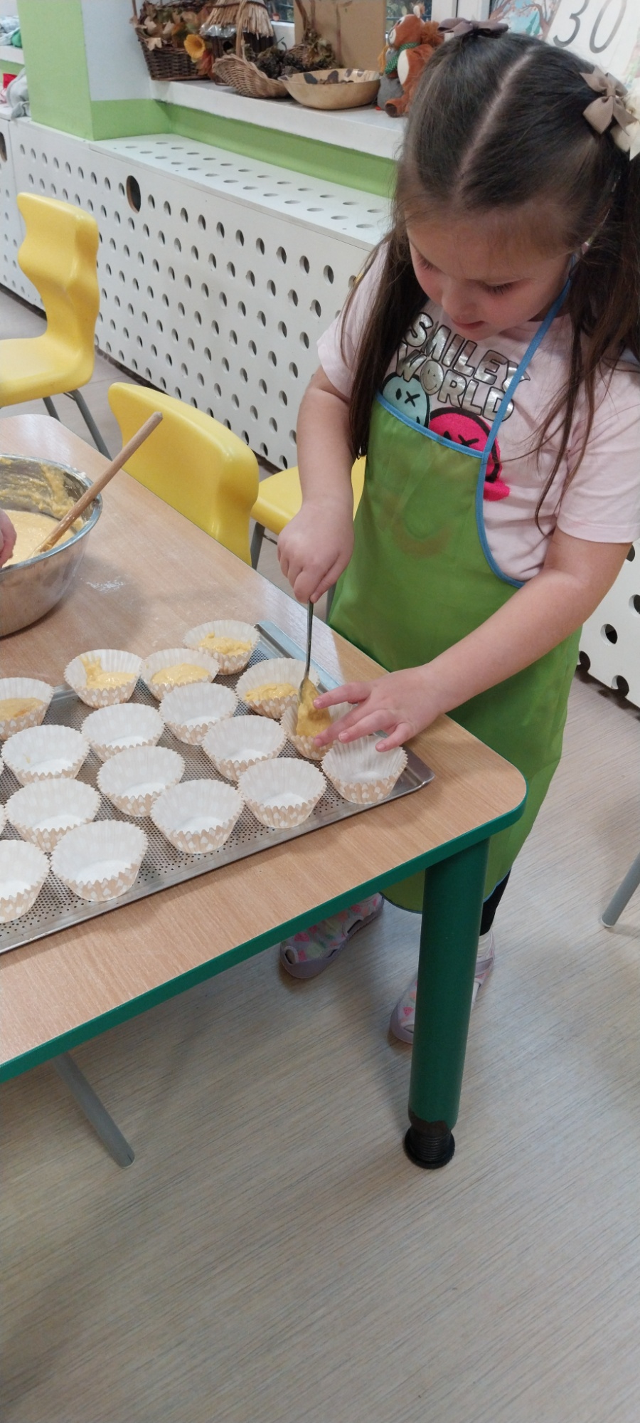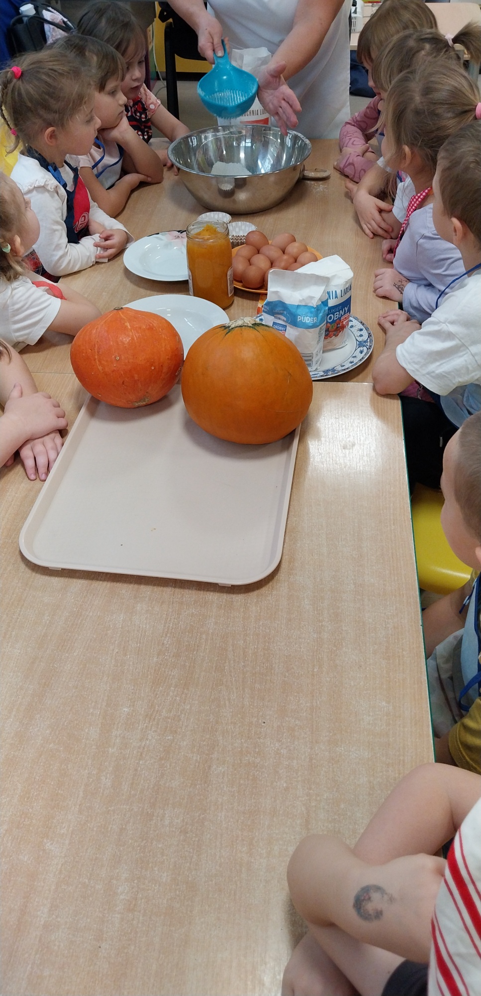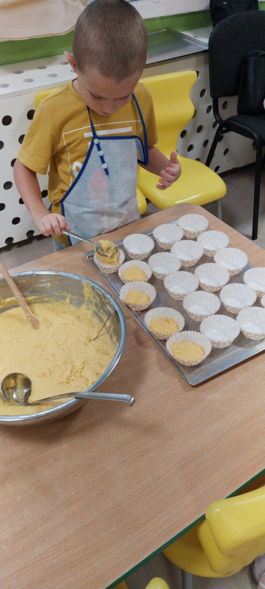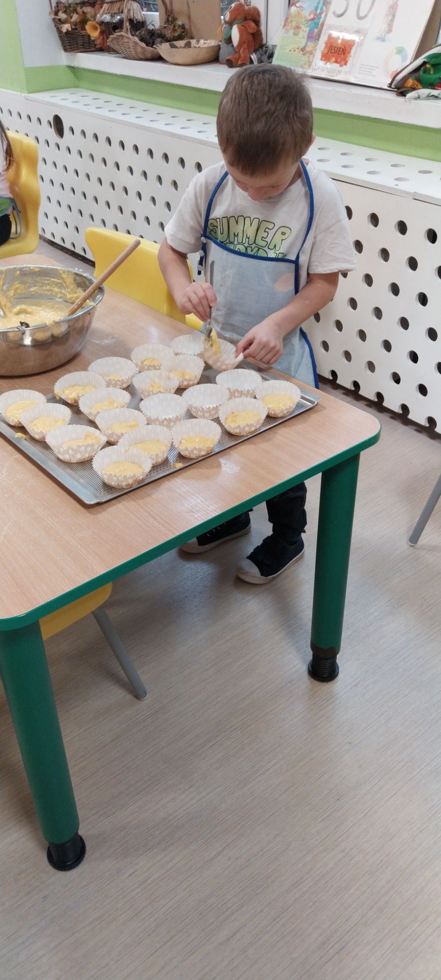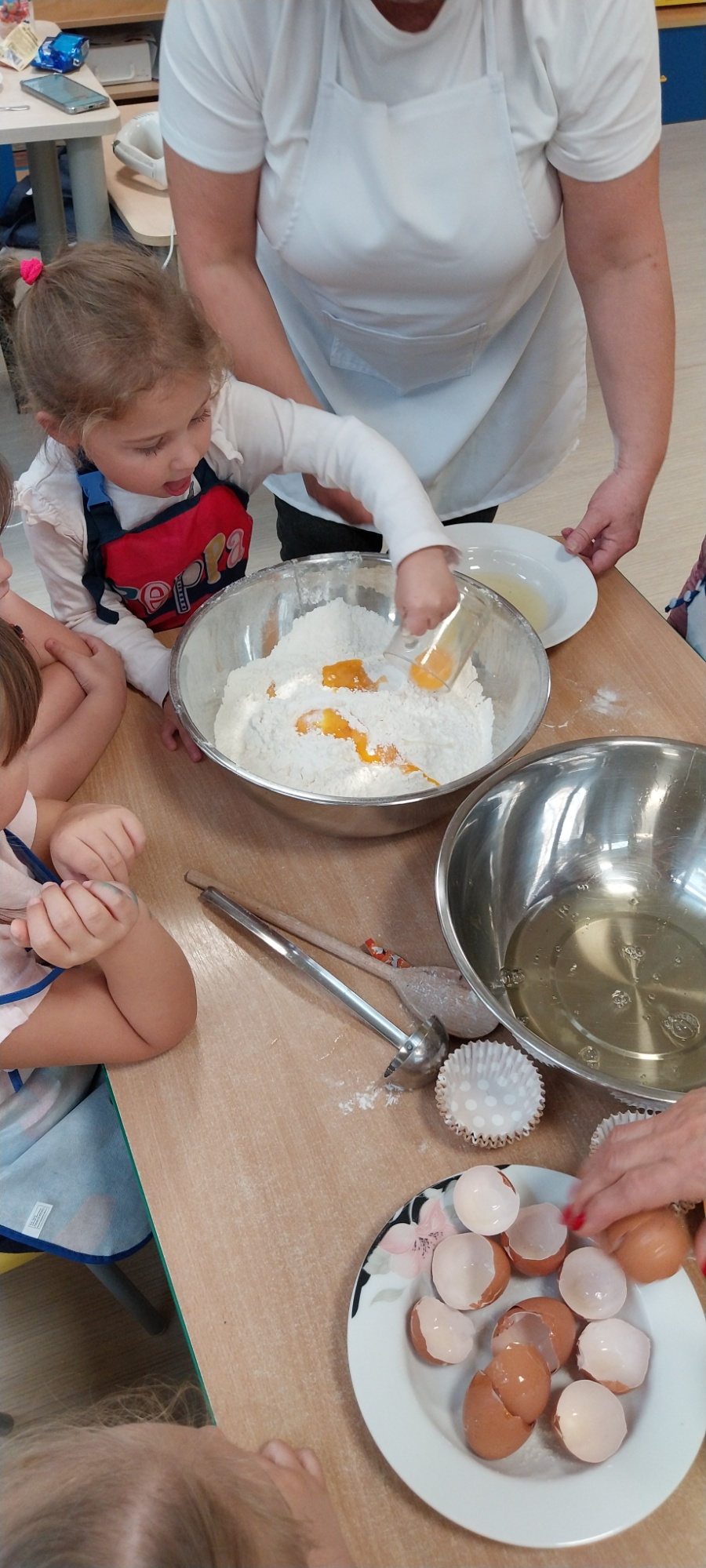 Zamieniamy się w małych kucharzy:) Pieczemy babeczki dyniowe, oczywiście według przepisu.