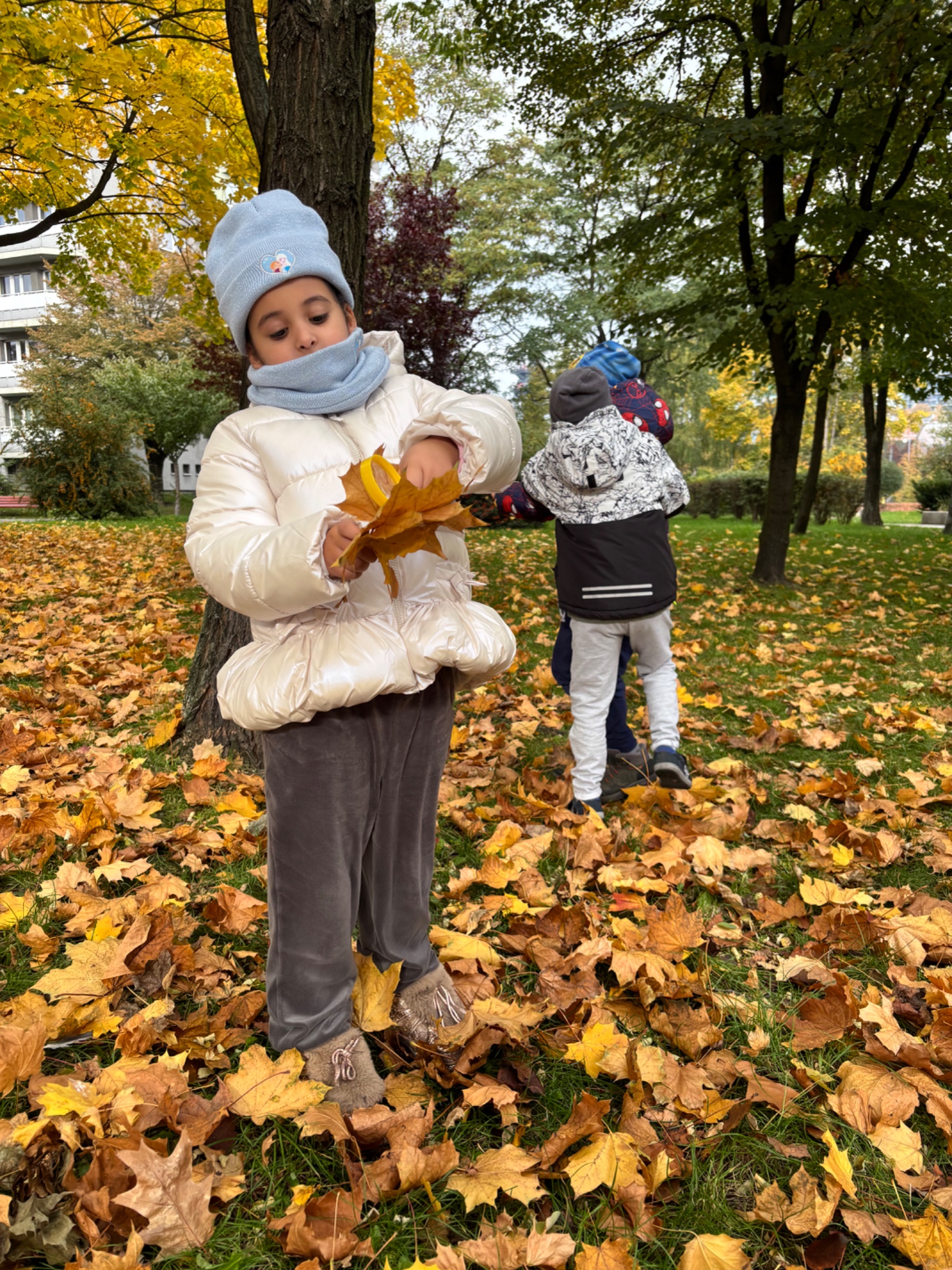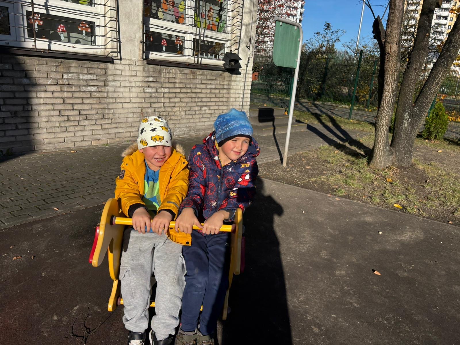 Jesienne zabawy na przedszkolnym placu zabaw - wykorzystujemy słoneczną pogodę na zabawy na świeżym powietrzu
