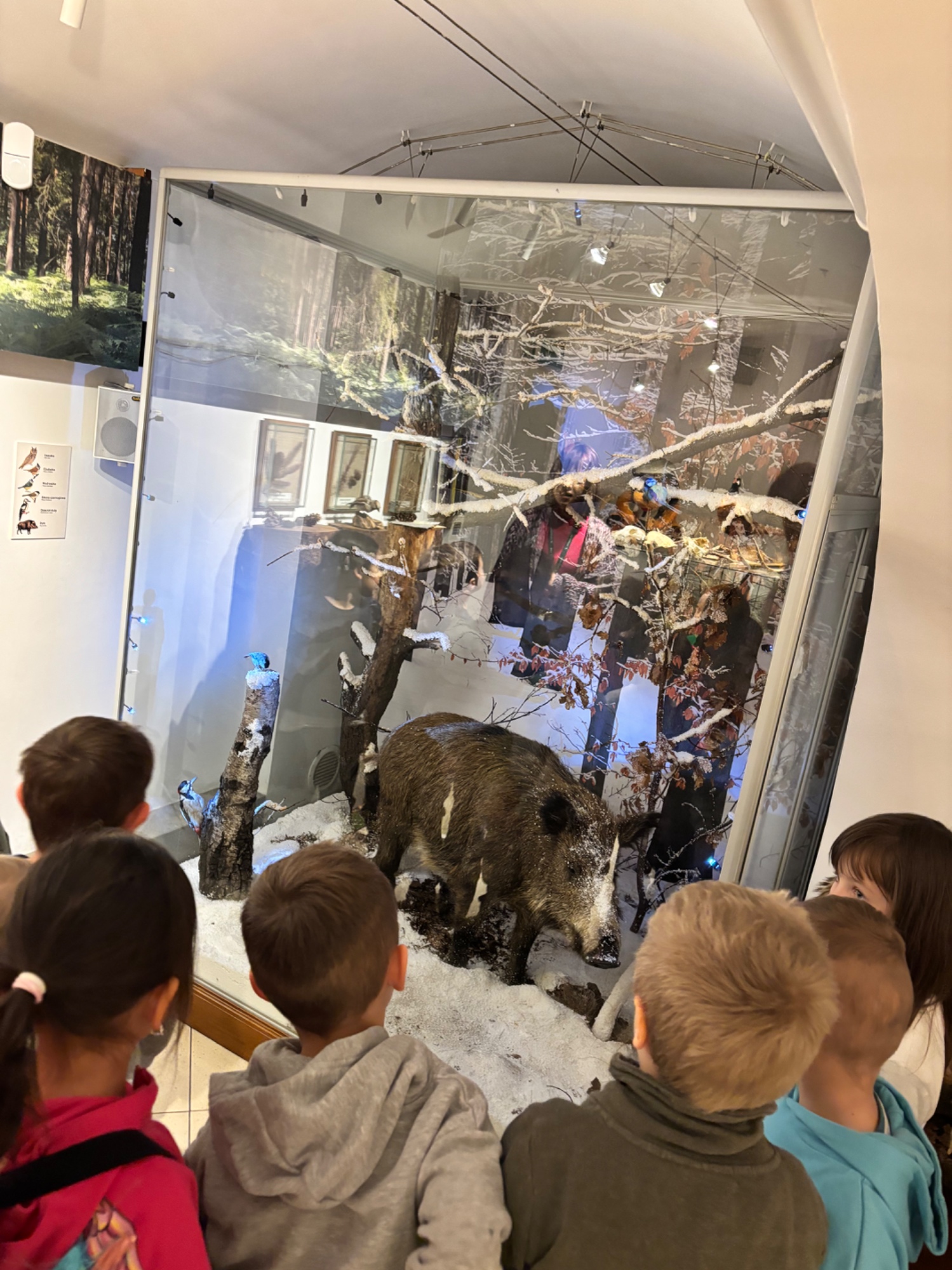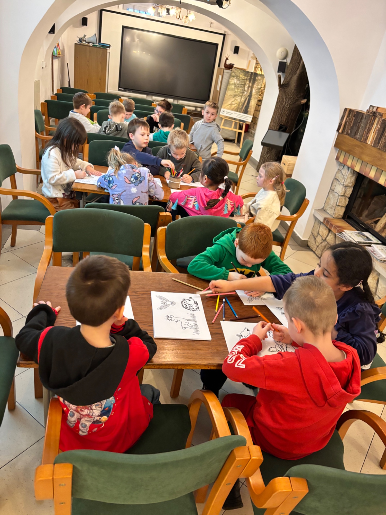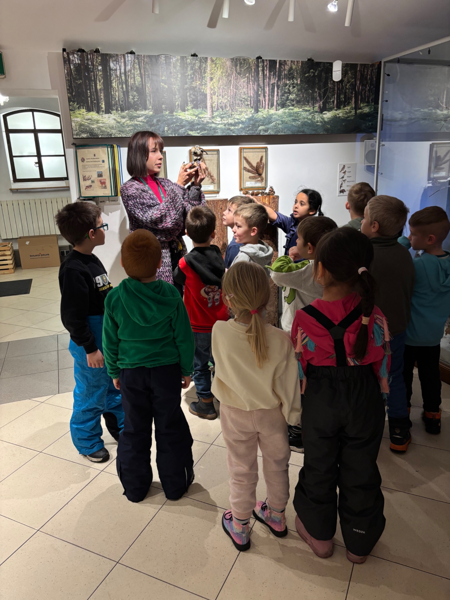 Podczas warsztatów dzieci dowiedziały się wielu ciekawostek na temat zwierząt żyjących w lesie, poznały ich odgłosy oraz mogły dotknąć niektórych z nich.