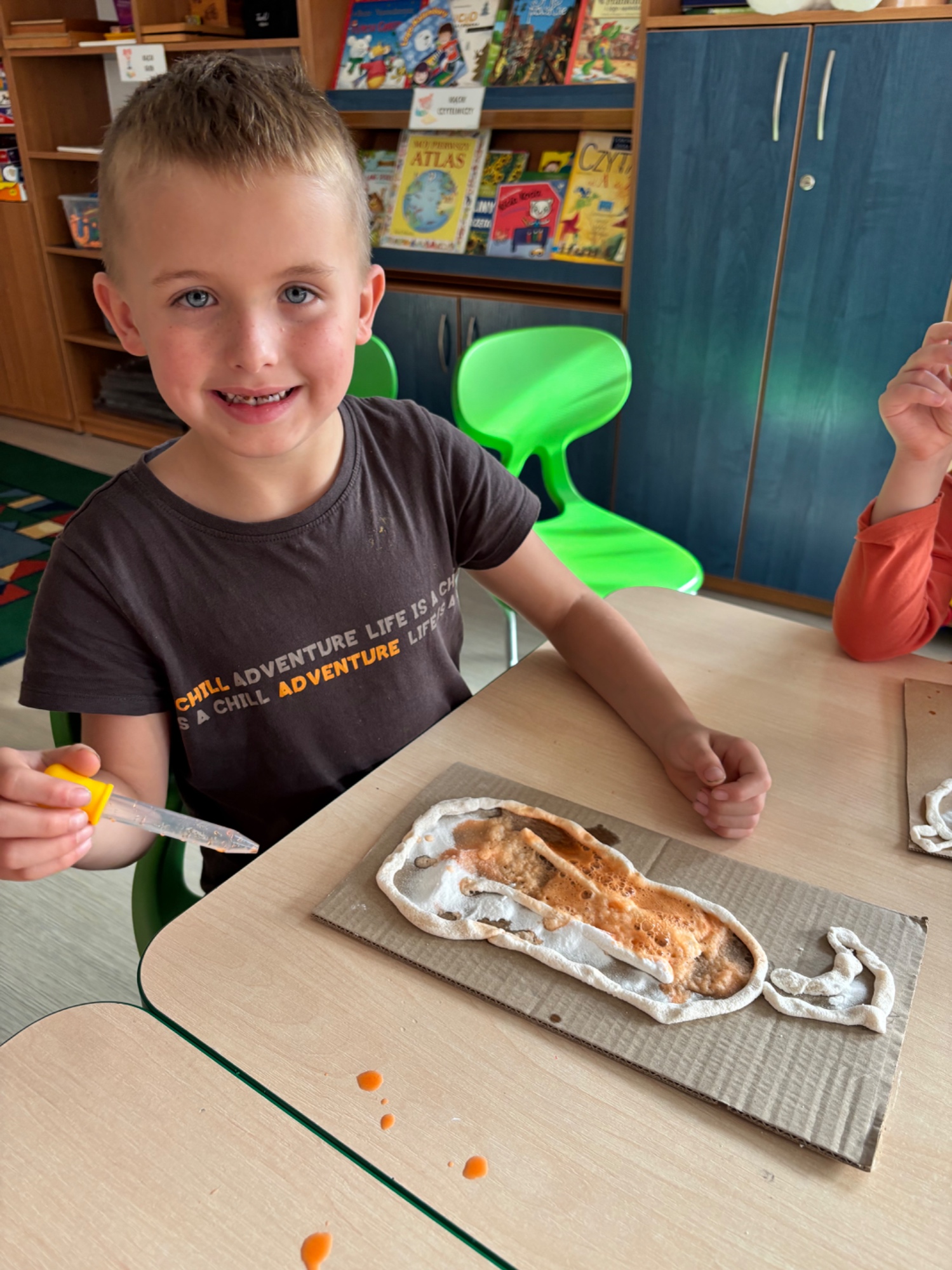 Po południu robiliśmy eksperymenty - musująca dynia - dzieci z zainteresowaniem obserwowały co się dzieje jeśli do sody doda się ocet