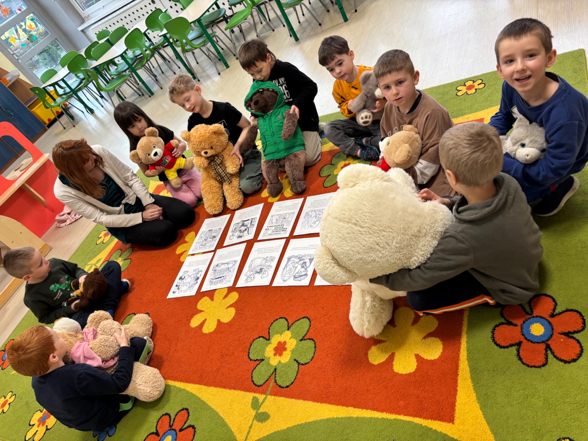 Na podstawie opowiadania ilustrowanego obrazkami poznaliśmy historię powstania Pluszowego Misia.