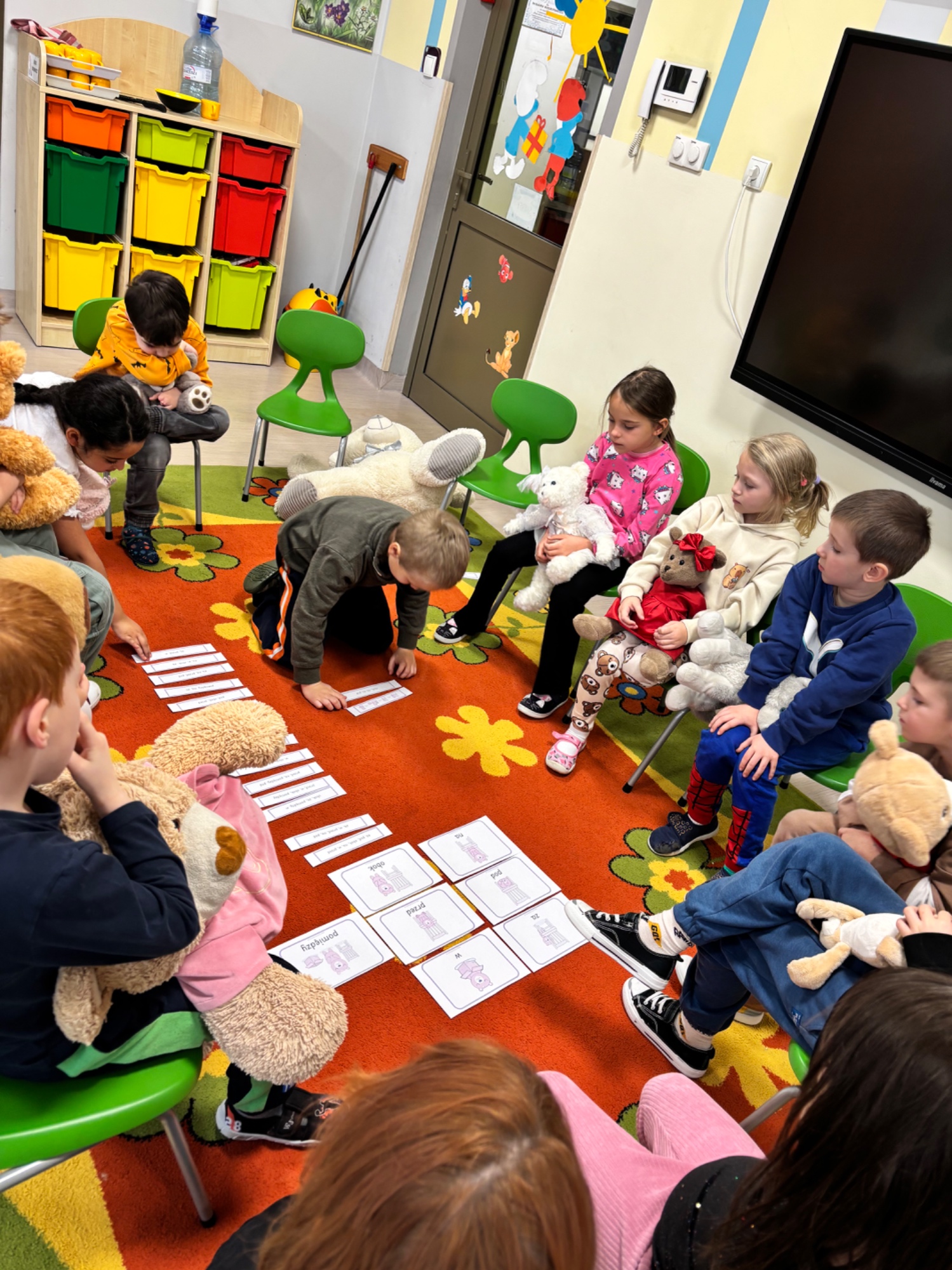 Kolejnym zadaniem było ułozenie obrazków w małych grupach - to też nie sprawiło im kłopotu.